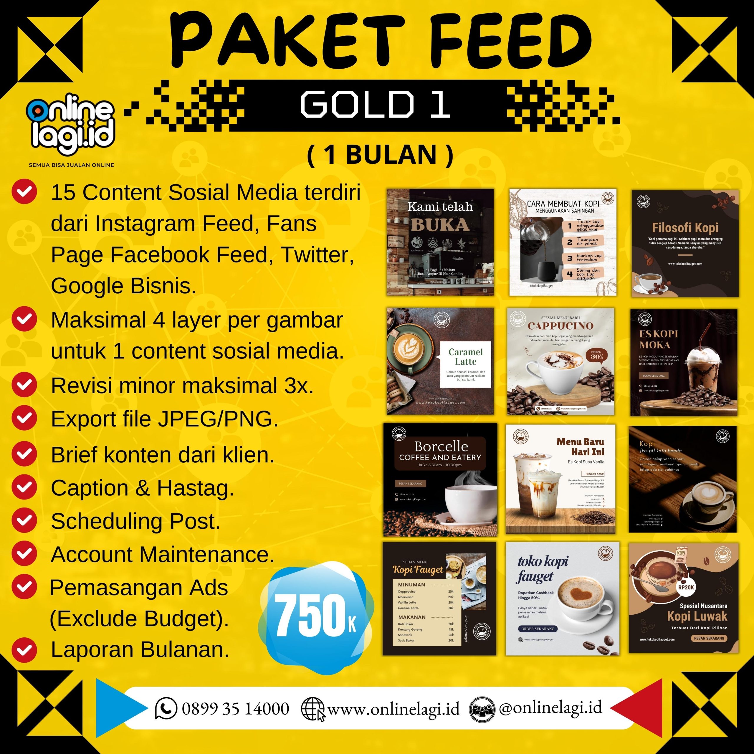 Feed merupakan salah satu bentuk konten yang dapat diposting di sosial media. Memiliki konten Feed yang menarik, tentunya akan menjadi penunjang meningkatnya penjualan dari produk jual kita. Selain itu, feed yang menarik juga dapat meningkatnya brand awarness kita.